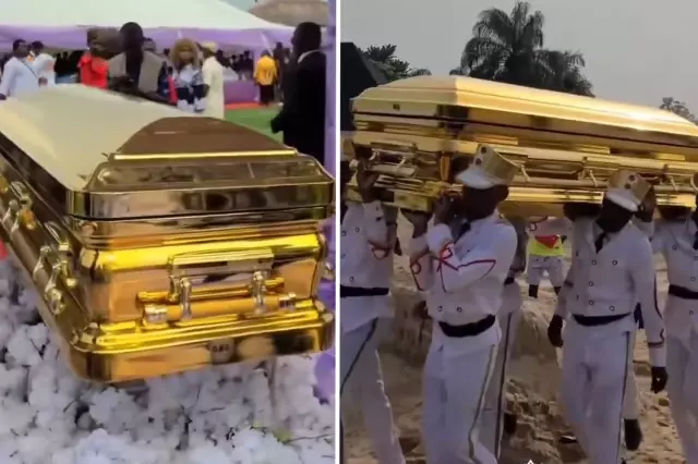 Nijerya'da "Peygamber İremya" olarak tanınan bir adam, 104 yaşında hayatını kaybeden annesini tamamen altın kaplama bir tabutla son yolculuğuna uğurladı.