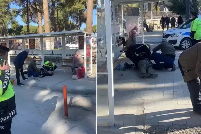 İzmir'in Tire ilçesinde yaşanan olayda, otobüs durağında fenalaşarak yere yığılan 79 yaşındaki Semayi Emirhor, dili boğazına kaçınca ölümle burun buruna geldi. O sırada bölgede bulunan polis memurunun saniyelerle yarışan müdahalesi, yaşlı adamın hayatını kurtardı.