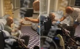 Eldiven takıp yaşlı adamı dövdü! Huzurevinde vicdanları sızlatan görüntüler