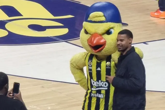 İtalya Serie A'da lider konumda bulunan Inter'in 22 yaşındaki yıldız orta saha oyuncusu Andy Diouf, Fenerbahçe Beko – Panathinaikos arasında oynanan mücadeleyi salondan takip etti. Fransız futbolcunun, Fenerbahçe Beko'nun maskotu olan Yellow ile fotoğraf çektirdiği görüldü.