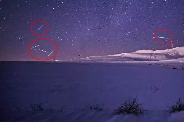 Bölgede doğa ve uzay gözlemciliği yapan Doç. Dr. Önen, "Yılın son gökyüzü şovunu kaçırmamak için dondurucu havaya rağmen gözümüzü ve ekipmanlarımızı gökyüzüne çevirdik. Meteorlar, büyük parıltıyla gökyüzünün derinliklerini yarıyor, ışıldıyor ve kaybolmakta. Bitlis'in konumu ve doğal yapısı, bu tür gök olaylarını gözlemlemek için ideal bir ortam sunuyor. Gökyüzündeki ihtişamlı yıldız ve meteor şöleni, Van Gölü ve Nemrut Kalderası etekleri gibi yeryüzü manzarasıyla birleşince ortaya büyüleyici kareler çıkıyor. Meteor yağmuru 14 Aralık dolaylarında zirve yaptı. Bugünlerde etkisi biraz azaldı. 14 Aralık'tan beri heyecanla izliyoruz" dedi.