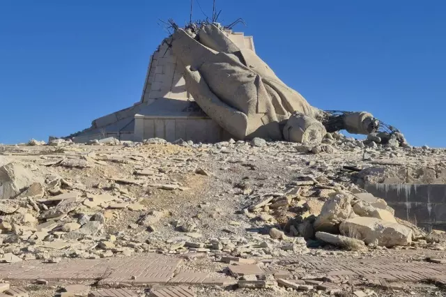 Suriye'de geçtiğimiz yıl Esad rejiminin yıkılmasının ardından Şam'ın yaklaşık 88 kilometre kuzeyinde bulunan ve "Heykel Tepesi" olarak bilinen noktaya iş makineleriyle çıkan halkın devirdiği Hafız Esad'ın ülkedeki en büyük heykeli hala devrik halde bulunuyor. 1 yıl geçmesine rağmen hala devrik halde bulunan heykel son yıllarda ülkeye hükmeden bir dönemin kapanışının ve Suriyelilerin özgürlük mücadelesindeki kararlılığının maddi bir kanıtı olarak varlığını sürdürüyor.