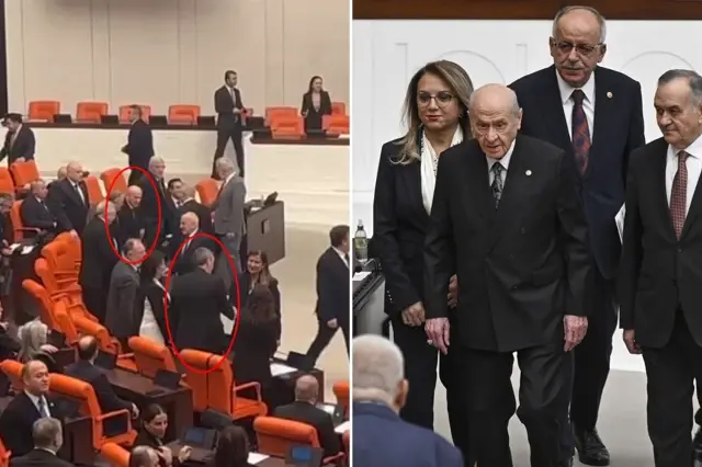 Dervişoğlu Genel Kurul salonuna girdiğinde Devlet Bahçeli ile tokalaşırken, DEM Parti Eş Genel Başkanı Bakırhan'ın Bahçeli'ye uzaktan selam verip tokalaşmaması dikkati çekti. CHP Genel Başkanı Özel ise bütün siyasi parti liderleri ile tokalaşmasının ardından Genel Kurul'u takip etti.