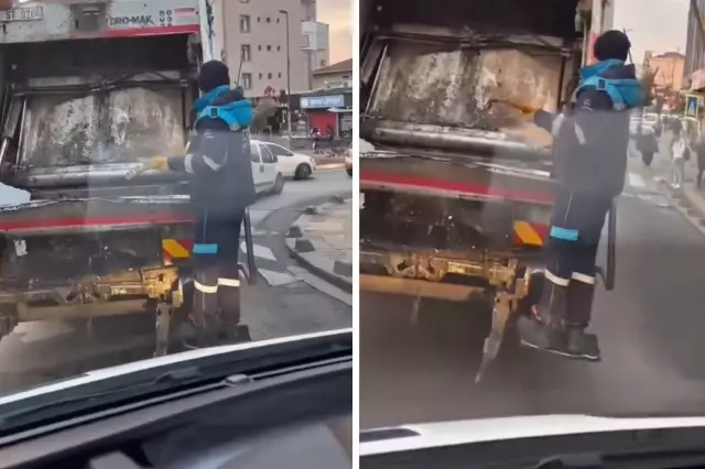 İstanbul'da çöp kamyonu ile çöp toplayan temizlik işçisi, çöpten bulduğu sazı kamyon kasasında çalmaya çalıştı. Yürek ısıtan o anlar kameralara yansıdı.