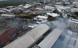 Esenyurt’ta devam eden fabrika yangını havadan görüntülendi