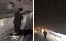 Kar ve tipi ulaşımı hayatı felç etti! Fırtınaya rağmen namazını kıldı