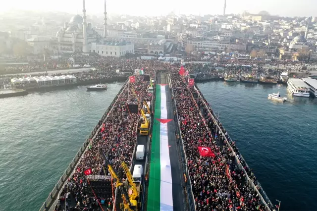 Yeni yılın ilk gününde on binlerce kişi, Milli İrade Platformu ve İnsanlık İttifakı öncülüğünde Filistin'e destek için Galata Köprüsü'nde bir araya geliyor. Sabah namazının ardından İstanbul'un farklı noktalarından köprüye yürüyüş düzenlenecek.