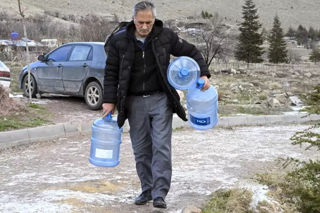 Ankara'nın Sincan ilçesinde, su kesintisi nedeniyle vatandaşlar su ihtiyaçlarını çevrede bulunan kaynak suyu çeşmelerinden karşılıyor.