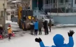 İş makinesinin önünü kesen çocuklar, kaydıkları alanın temizlenmemesini istedi
