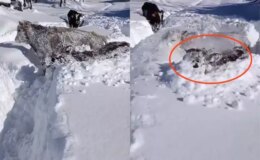 Kastamonu’da ineklerin 1,5 metrelik karla mücadelesi