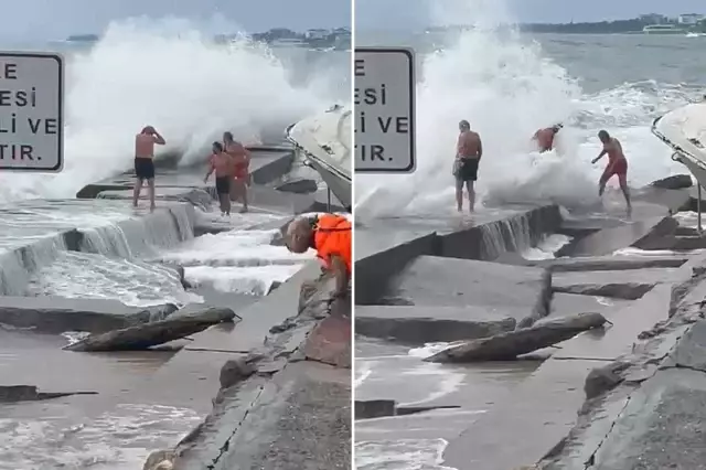 İstanbul'un Kadıköy ilçesinde yer alan Caddebostan Sahili'nde 4 Ocak Pazar günü akıllara durgunluk veren bir olay yaşandı. Lodosun etkisiyle yükselen dalgalar, denize girmek isteyen 3 kişiyi savurdu.