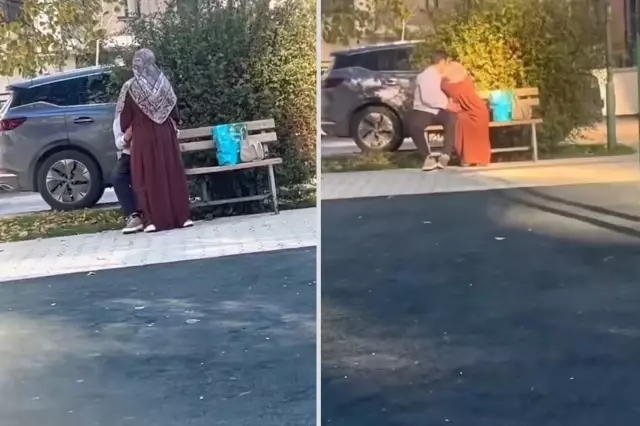 İddiaya göre; çift, kentteki bir parkta vatandaşların bulunduğu alanda uygunsuz davranışlarda bulundu. O anları gören bir kişi, yaşananları cep telefonuyla kayda aldı.