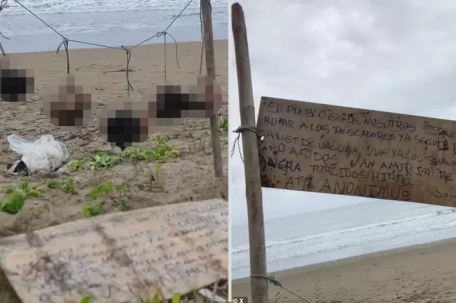 Yerel basına yansıyan görüntülerde başların sahile, ahşap direklere bağlanan iplerle asıldığı görüldü. Olay yerinde ayrıca balıkçılardan haraç aldığı iddia edilen kişilere yönelik tehdit içeren bir uyarı levhasının bulunduğu aktarıldı.
