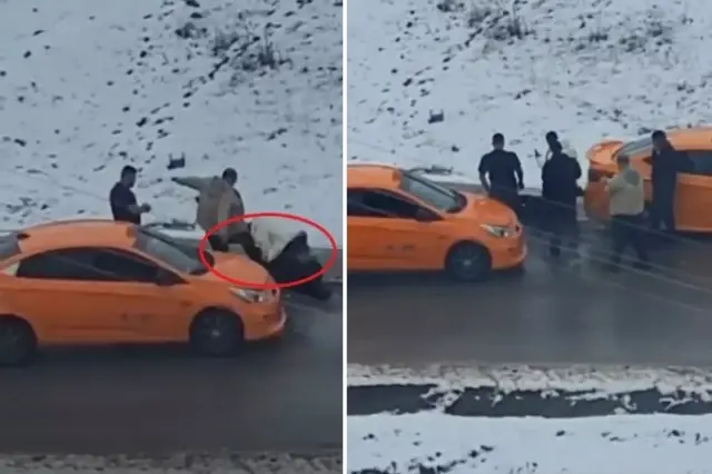 Ankara'da yol ortasında bir kişinin 5 kişi tarafından tekme yumruk darbedildiği anlar, cep telefonuyla görüntülendi.