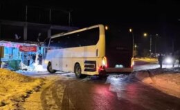 Buzda kayan otobüs devrilmekten son anda kurtuldu