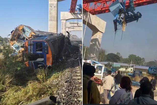 Tayland'da demiryolu ray döşeme çalışmalarında kullanılan büyük bir inşaat vinci hareket halindeki bir trenin üzerine devrildi. Kaza sonucunda en az 22 kişi hayatını kaybetti ve birçok yolcunun tren vagonlarında mahsur kaldığı bildirildi.
