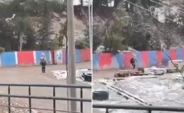 Kar yağarken İstiklal Marşı’na saygı duruşunda bulunan minik, gönülleri fethetti
