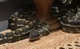 Gece yarısı üzerinde 2,5 metrelik pitonla uyandı