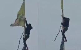 Suriye halk, terör örgütü sembollerini yırtarak indirdi