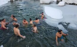 Rize’de Sibirya’yı andıran görüntüler, sporcular donmuş suda yüzdü