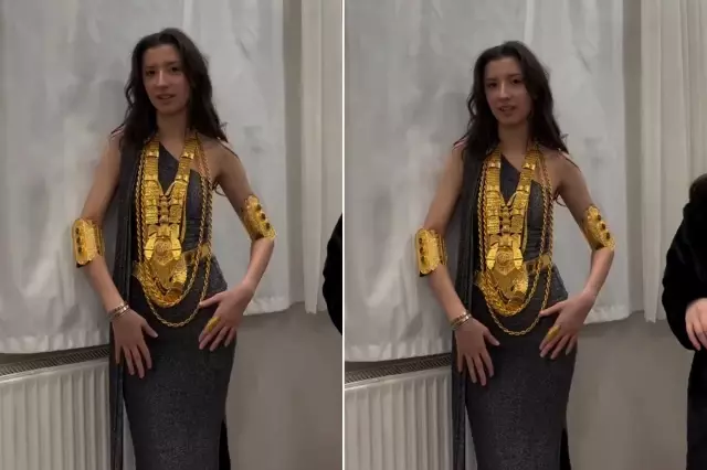 Görüntüler sonrası birçok kullanıcı paylaşımı mizahi bulurken, bazıları da düğünlerde takılan altınların ulaştığı boyuta dikkat çekti.