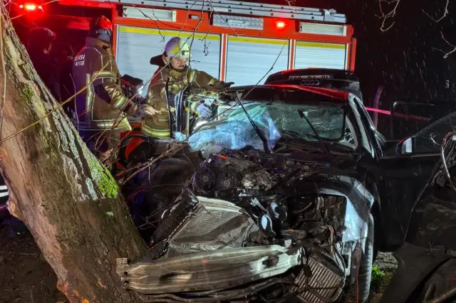 Çarpmanın etkisiyle ağaç metal yığınına döndü. İhbar üzerine olay yerine sağlık, polis ve itfaiye arama kurtarma ekipleri sevk edildi.