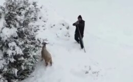 Mahalleye inen kurtları elindeki çaydanlıkla kovaladı