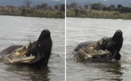 Nefes kesen anlar: Timsahın saldırdığı bufalo mucizevi şekilde kurtuldu
