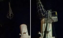 Şiddetli fırtına cami minaresine zarar verdi