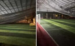 Şiddetli rüzgar nedeniyle halı sahanın tavanı çöktü