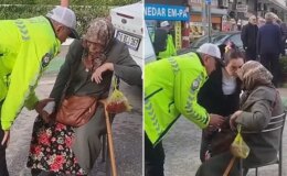 İşte Türk polisi! Ambulans gelene kadar yaşlı kadının elini bırakmadı