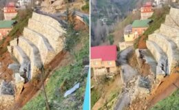 Büyük panik! İstinat duvarı kar suyuna dayanamadı