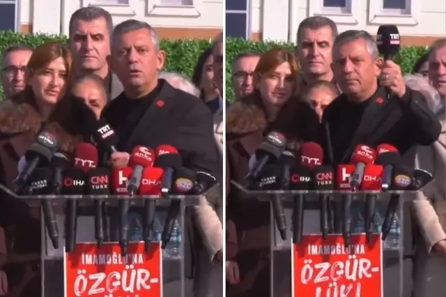 CHP Genel Başkanı Özgür Özel, Aziz İhsan Aktaş davasının duruşması sonrası Silivri Cezaevi önünde açıklama yaparken sinirlerine hakim olamadı. Dava sanıklarından birinin eşini çağırıp TRT mikrofonunu eline alan Özgür Özel, "1 yıllık evli, bakın onun gözüne. Kocasının mühür çıkan kasasına dolar montajlayan TRT. Ne diyorsun diye sor bakalım" dedi.