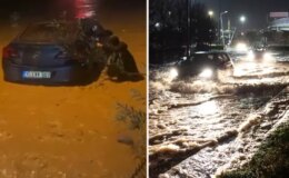 İzmir’de sağanak ve fırtına hayatı felç etti: Sel suları araçları sürükledi