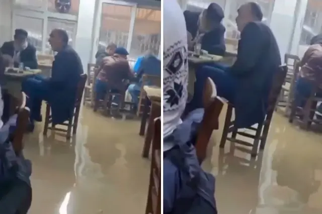 Adana'da etkili olan sağanak yağışta cadde ve sokaklar göle dönerken, bir kahvehaneyi su basmasına rağmen oyun oynamaya devam eden vatandaşların görüntüleri sosyal medyada gündem oldu.