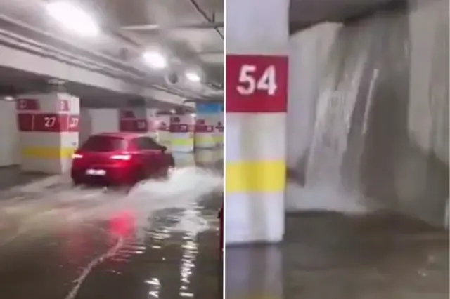 Görüntülerde, otoparkın tavan ve duvar birleşim noktalarından adeta bir şelaleyi andıran yoğunlukta suyun içeri aktığı görülüyor. Yağışın şiddetiyle birlikte otoparkın geniş bir bölümü kısa sürede suyla doldu.
