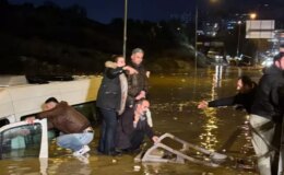 İzmir’de sağanak hayatı felç etti, oltasını kapan göle dönen yola attı