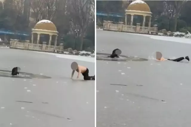 Olay, Çin'in Luoyang kentinde bulunan bir parkta meydana geldi. Küçük bir çocuk, arkadaşlarıyla birlikte donmuş gölün üzerinde oynarken buz aniden kırıldı ve çocuk buz gibi suya düştü. Sıfırın altındaki soğukta çırpınan çocuk, kendi başına sudan çıkmayı başaramadı.