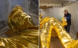 13 milyon liraya dev Trump heykeli: Tamamı altın kaplama