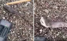 Amatör balıkçıların oltasını yavru köpek balığı takıldı