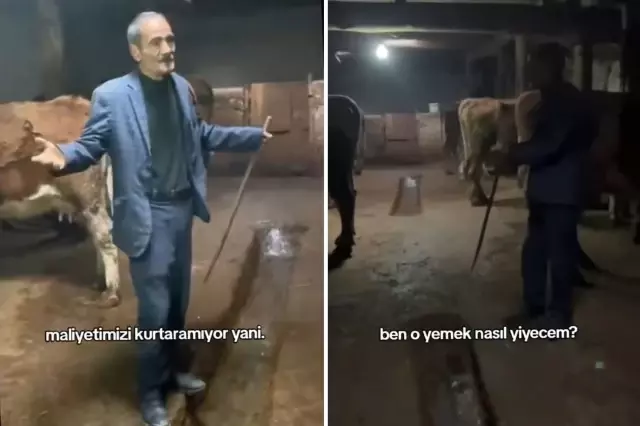 Ahırda hayvanlarının başında konuşan bir vatandaş, yem fiyatlarının 900 liraya yükselmesi nedeniyle hayvanlarına yem alamadığını belirterek "Ben bugün yemek yemeyeceğim. Hayvanlar kuru saman yiyor, yem alamadım… Yemin ederim içim yanıyor" diyerek yaşadığı duruma tepki gösterdi.