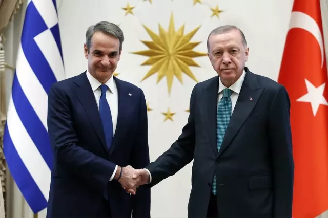 Erdoğan ve Miçotakis, merdivenlerde Türk ve Yunan bayrakları önünde fotoğraf çektirdi. Cumhurbaşkanı Erdoğan, daha sonra Miçotakis ile görüşmeye geçti. İkili görüşme sonrası Erdoğan ve Miçotakis, Türkiye-Yunanistan 6. Yüksek Düzeyli İşbirliği Konseyi Heyetlerarası Görüşme Oturumu'na başkanlık edecek.