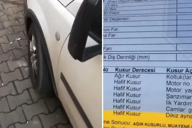 Paylaşılan görüntülerde, koltuk kılıfında bulunan ufak bir sökük nedeniyle aracın ağır kusurlu olarak değerlendirilmesi dikkat çekti. Vatandaş, kararın orantısız olduğunu savunarak uygulamaya tepki gösterdi. Oradaki çalışanların kendisine koltuğun 250 liraya yapıldığını söylediğini belirten vatandaş, "Bana 'randevu alırız, tekrar girip yaptırırsınız' dediler. Bunun araştırılması lazım. O içeridekilerle dışarıdakiler bağlantılı mı?" ifadelerini kullandı.