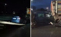 Seyir halindeyken tekeri kopan otomobil kamyona çarptı