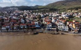 İzmir Foça’da sağanak; dereler taştı, denizin rengi değişti
