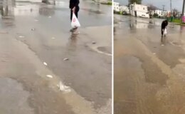 Sağanak göleti taşırdı, gökten asfalta balık yağdı! Poşetini kapan topladı