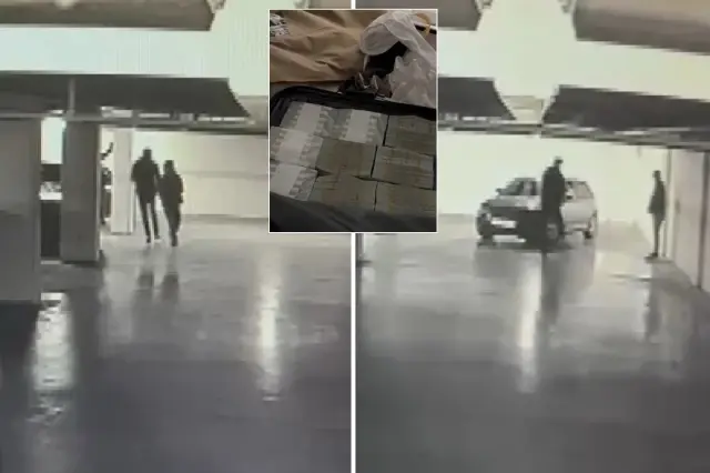 Daha sonra 4 kişi araçla siteye girdi ve otoparka indi. Şüpheliler, otoparktaki 2 aracın bagajını ve camlarını kırarak içinde dolarların olduğu çuvalları çalıp kaçtı. O anlar güvenlik kamerası tarafından saniye saniye kaydedildi.