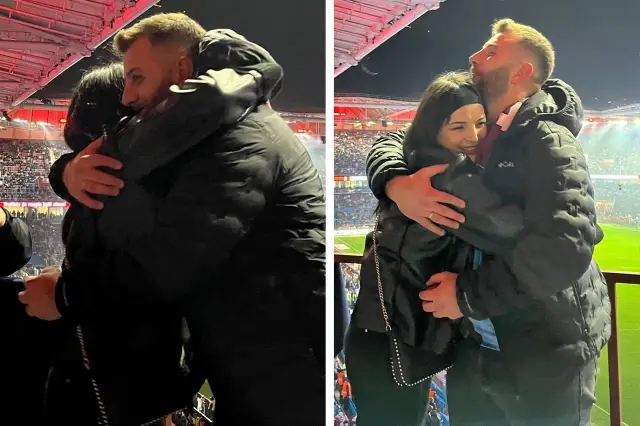 Kız arkadaşının 'Evet' yanıtı vermesiyle birlikte tribünde bulunan taraftarlar çifti alkışlarla tebrik etti. O anlar cep telefonlarıyla kaydedilirken, ortaya renkli ve duygusal görüntüler çıktı. 14 Şubat Sevgililer Günü'nde yaşanan sürpriz teklif, derbi gecesine damga vuran anlardan biri oldu.