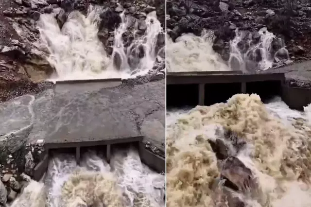 Bölgede yaşayan dogadakigezgin kanalından paylaşılan videoda, dağın içinden gelen suyun şelaleye dönüştüğü gözlendi.