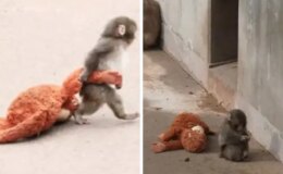 Annesi tarafından terk edilen maymun viral oldu! Aradığı şefkati peluş oyuncakta buldu